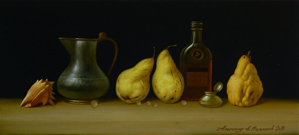 Александр Мельников имеет солидный послужной список и сотрудничает с лучшими мировыми галереями и арт-центрами (Канада, Франция, Швейцария, Монако). Автор справедливо замечает, что найти другого художника, работающего в такой же, как и у него манере, не реально. По крайней мере, в Украине и ближнем зарубежье. Слишком скрупулезно выстроены композиции, много тщательной деталировки и предметов. Слишком много времени отнимают лессировки, овладению которыми художник посвятил немало времени и не до конца открывает секреты, которых немало.
