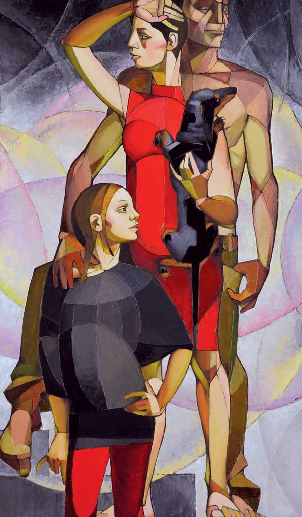 Оксана Кирпенко не оставила без внимания темы, над которыми работает уже несколько лет – материнство, дети, семья, любовь. От заботливого и внимательного взгляда художницы-матери не уходит ни один этап взросления молодого поколения: их интересы, увлечения и переживания. «Счастье», «Гитарист», «Мой урожай» – с этих картин на нас смотрят дети художницы – увлеченные, иногда веселые, а иногда и уставшие, но довольные своими первыми достижениями. Особо среди этих работ выделяется серия «Океан» – «Даня», «Сева», «Соня». Художница сознательно ушла от красивости, любования и развернула перед зрителем галерею детских образов, попытавшись раскрыть характер каждого ребенка, уловить личностные моменты и особенности. Теперь мы можем говорить о том, что сын художницы Даня – шаловливый и веселый, легкий по характеру ребенок, вдумчивым и несколько самоуглубленным предстает Сева. А вот Соня – это нежный и ранимый цветок, беззащитный и впечатлительный, верящий в чудеса. Апогеем темы является триптих «Семья» – монументальный и величественный, позволяющий думать о том, что семья для художницы – это крепость, разрушить которую не под силу ни времени, ни обстоятельствам.