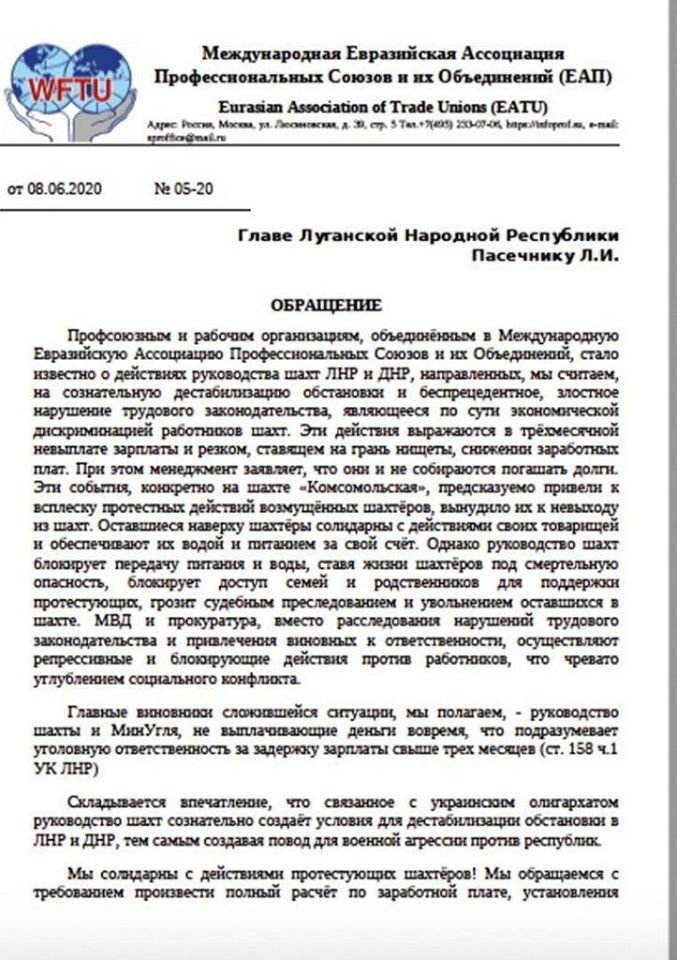 МИД Украины должен обратиться к ОБСЕ и к ООН с просьбой вмешаться в это вопиющее нарушение прав человека, чтобы спасти жизни участников подземной забастовки от произвола российских спецслужб. Надо проверить, не бросают ли инициаторов забастовки в тайные тюрьмы ФСБ, нет ли нарушений прав человека? Почему Россия не несет ответственности за нормальную работу предприятий, за невыплату зарплат через подконтрольные предприятия? Этот вопрос надо вынести на Трехстороннюю контактную группу.