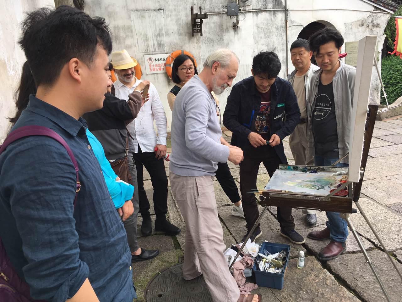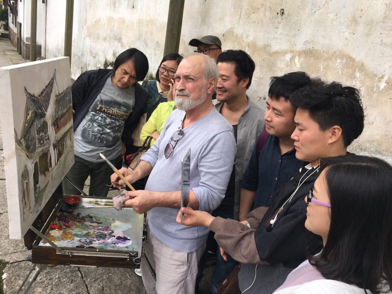 Вначале я год преподавал в Чжэцзянском педагогическом университете, готовил преподавателей живописи и рисунка. Сейчас я – почетный профессор нескольких университетов, периодически курирую различные проекты, как, например, живописные пленеры или мастер-классы. Три года назад открылся Гуйда арт-центр «Академия», в котором проходят обучение зрелые художники, в основном из числа преподавателей школ, студий, университетов. Обучение предполагает интенсивный месячный курс, каких в течении года бывает два – осенью и весной в разных уголках Китая. Для музеев, университетов или городских властей, которые приглашают нас, это престижно и сразу же поднимает уровень. Как правило, набираем на курс не более 25 студентов при том, что обычно подают заявки более 60 художников. Из-за карантина отменились весенние занятия 2020 года. До этого собирались вместе осенью 2019 года в городе Циндао. После окончания интенсива проводим отчетные выставки.