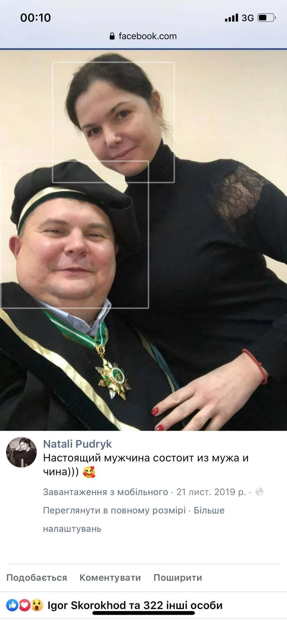 Денис Пудрик вместе с супругой - "Настоящий мужчина состоит из муж и чина" - написала Наталья в ноябре 2019-го по этой фотографией. .Кто же она такая? Наталья Пудрик - урожденная Куницына, как видно даже из названия ее аккаунта и семейных фотографий. Это дочь Сергея Куницына - бывшего депутата Блока Петра Порошенко, который в марте 2020-го возглавил Консультативный совет по делам ветеранов при Зеленском, и вот кто его пригласил в ОП: