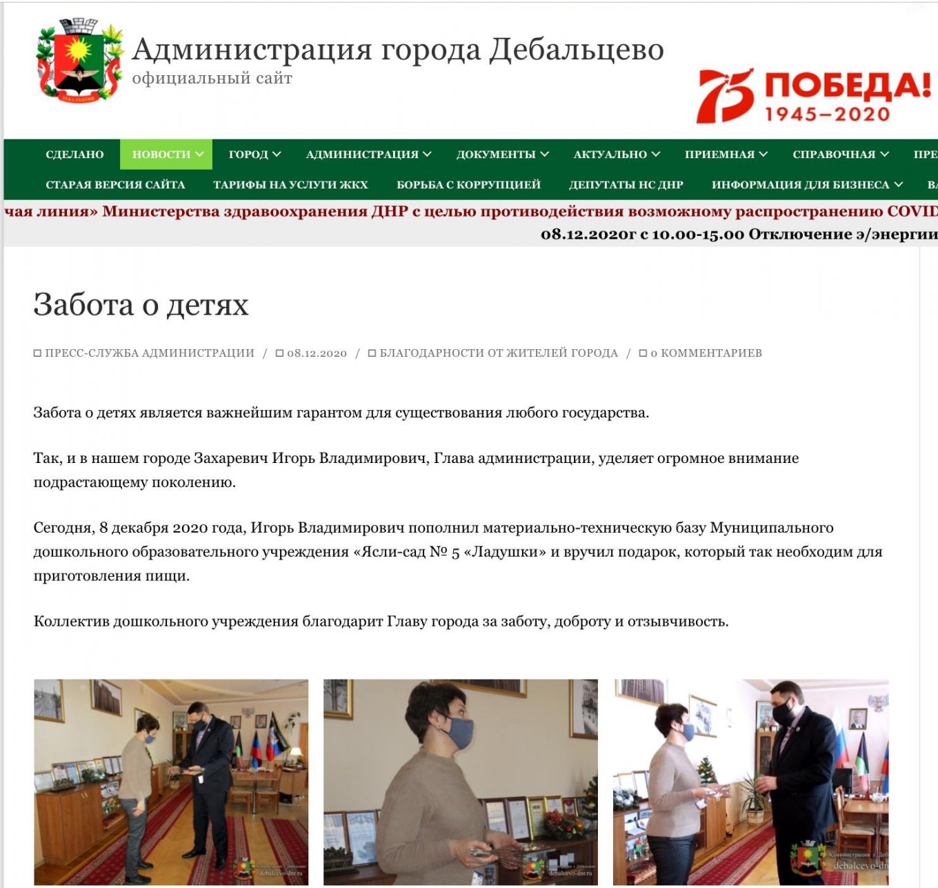 Назначенный боевиками «мэр» Дебальцево Игорь Захаревич сделал щедрый подарок детскому садику.