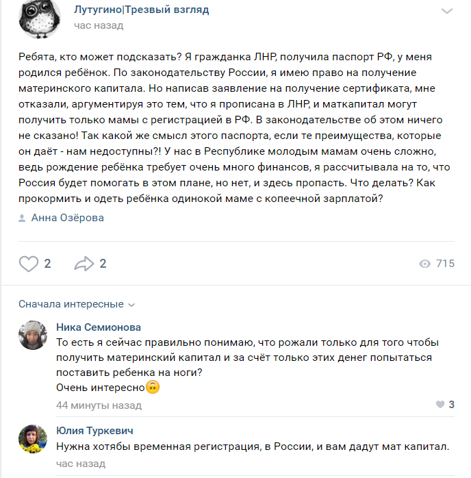 Вообще, как бы это не мое дело. Но, информационное волонтерство, оно, знаете ли, не имеет границ и ты со временем становишься просто машиной, которая обрабатывает всю поступающую информацию, зная, что завтра-послезавтра-через 5-10 лет, когда закончится война, все вопросы, которые сейчас задает меньшинство граждан Украины, задаст большинство, и если мы не подойдем к реинтерграционным вопросам обдуманно, то вопросы задавать будут с выпученными от ужаса глазами крича "как так, почему я должен за это платить, почему мы тратим на это государственные деньги, зачем это нам, насколько это законно".