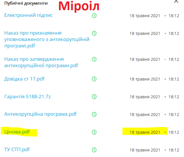 В одному з цих тендерів фірма «Міроіл» припустилася помилки та випадково вже зараз оприлюднила свою тендерну пропозицію до проведення аукціону, призначеного на кінець червня. По закону цього робити не можна, аби всі на аукціоні були в рівних умовах.
