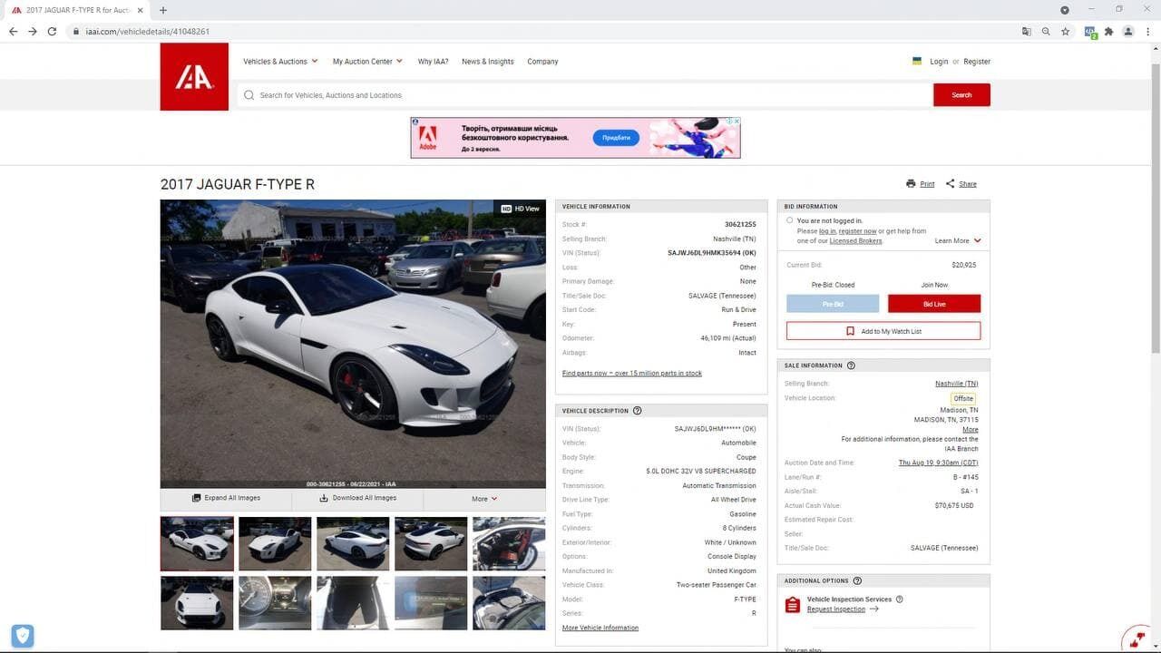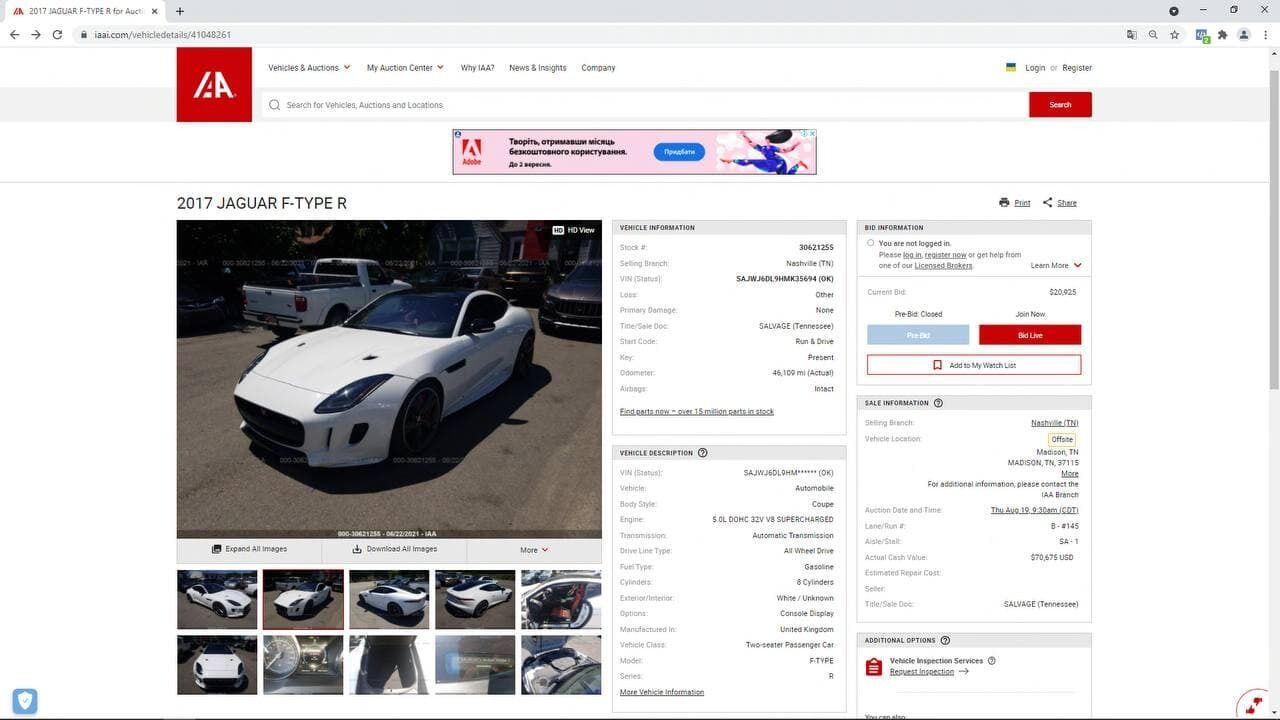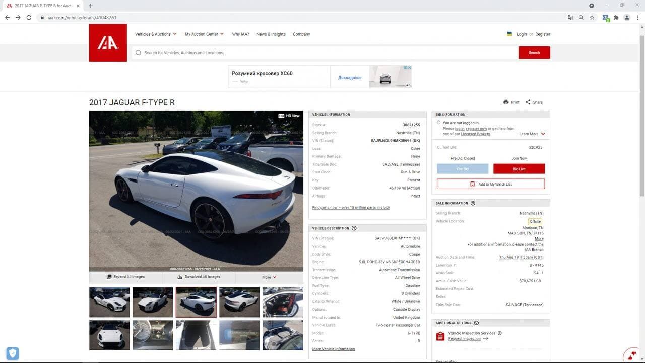 Предлагаю рассмотреть наглядный пример - ссылка на аукцион, где автомобиль продавался первоначально, на фото можно увидеть его состояние и ВИН код автомобиля (SAJWJ6DL9HMK35694)