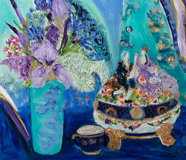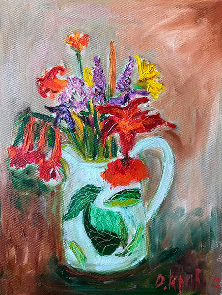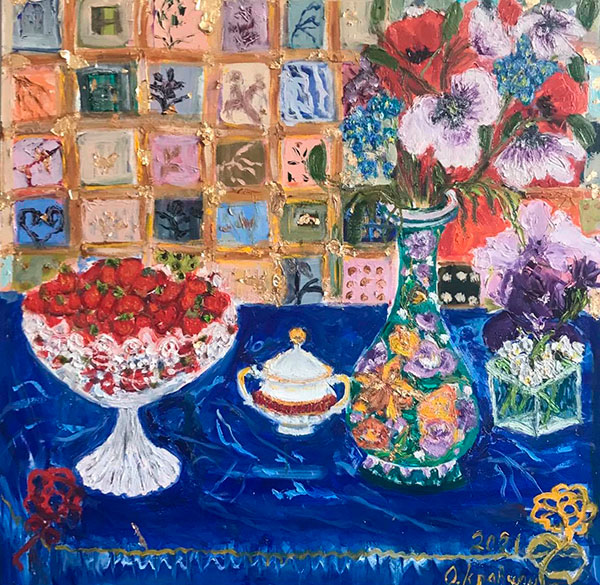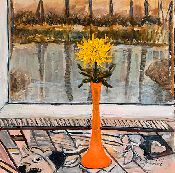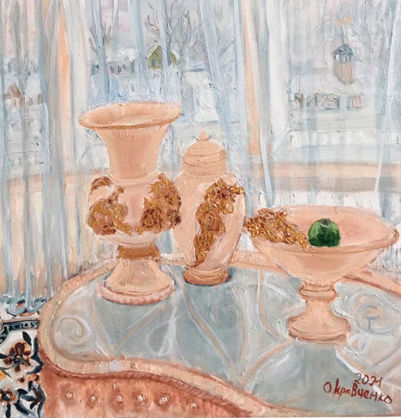 Творчість київської мисткині Ольги Кравченко добре відома українським поціновувачам наївного мистецтва. Світ живописів художниці надзвичайно щирий. Відкритість світогляду і думок провокують до прямого діалогу без посередників – все, що ми бачимо на полотнах не містить підтекстів чи тлумачень. Квіти, різноманітний посуд, меблі – ці звичні домашні речі під пильним поглядом художниці стають особливими та несуть в собі прихований сакральний сенс. В них хочеться зануритися – увійти до кімнат, вдихнути аромат квітів, відчути на дотик делікатну порцелянову кераміку. Асоціативність затишку простору полотна знаходиться на високій щемкій ноті уявлень про те, яким має бути справжнє мистецтво.