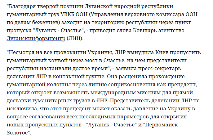 Любая помощь от международных организаций в ОРДЛО информационный повод покричать "Европа признает геноцид народа Донбасса, ООН признает республики, ООН признает гражданскую войну на Донбассе, Украина была против поставок гумнитарных грузов ООН".