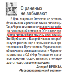Еще раз, медицинские гуманитарные грузы, которые поступают в ОРДЛО от различных организаций передают на нужны военных ОРДЛО, ополчения, оккупантов. Но, не мирных граждан! Продукты для госпиталей, подарочные наборы для раненных военных ОРДЛО, лекарство для военных "республик" от ООН… По мне, то это как-то перебор!