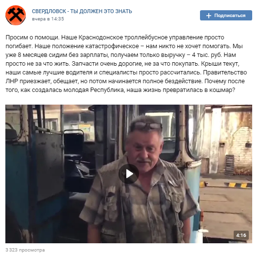 Цитата из ОРДЛО соцсетей, вещает их ЛОМ-пропагандист «донецкий»: