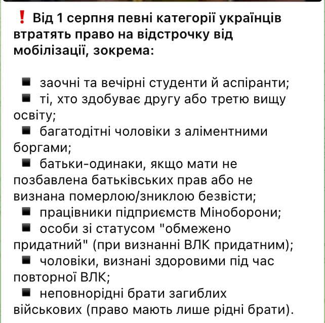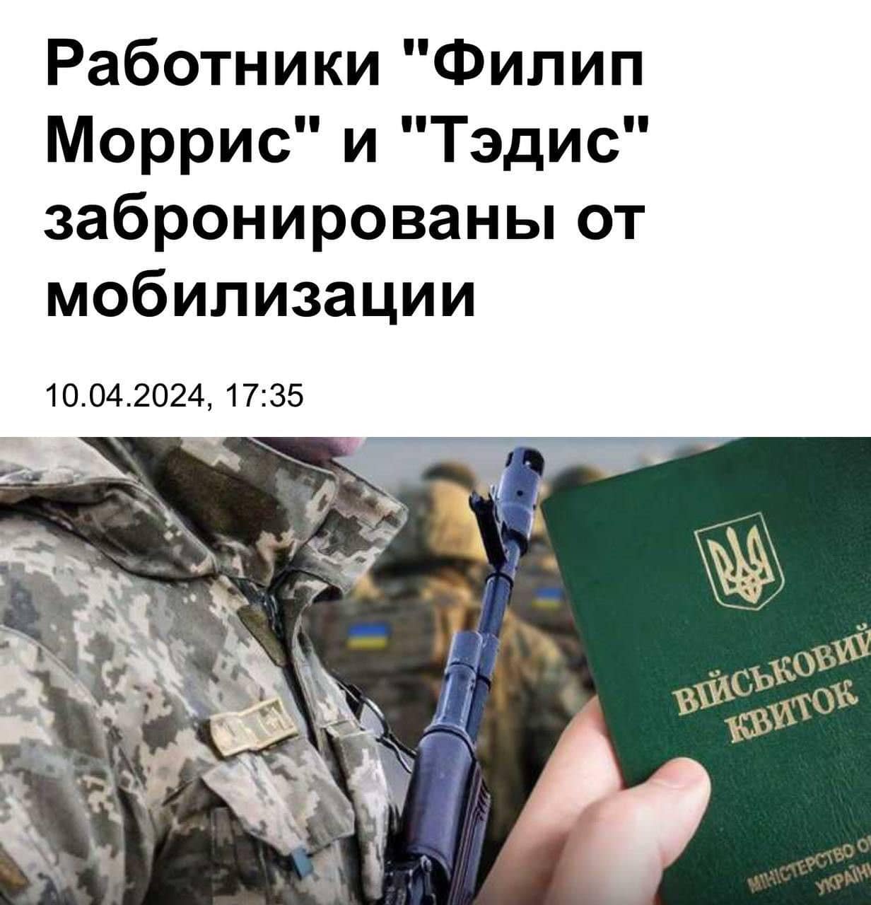 І це в той, коли з 1 серпня певні категорії українців втратять право на відстрочку від мобілізації. І мова не лише про студентів та батьків-одинаків, а й про працівників підприємств Міноборони. Тобто, працівники підприємств Міноборони це зовсім не важливо, а от працівник тютюнової фабрики — це саме той резерв, який наближає нашу перемогу.