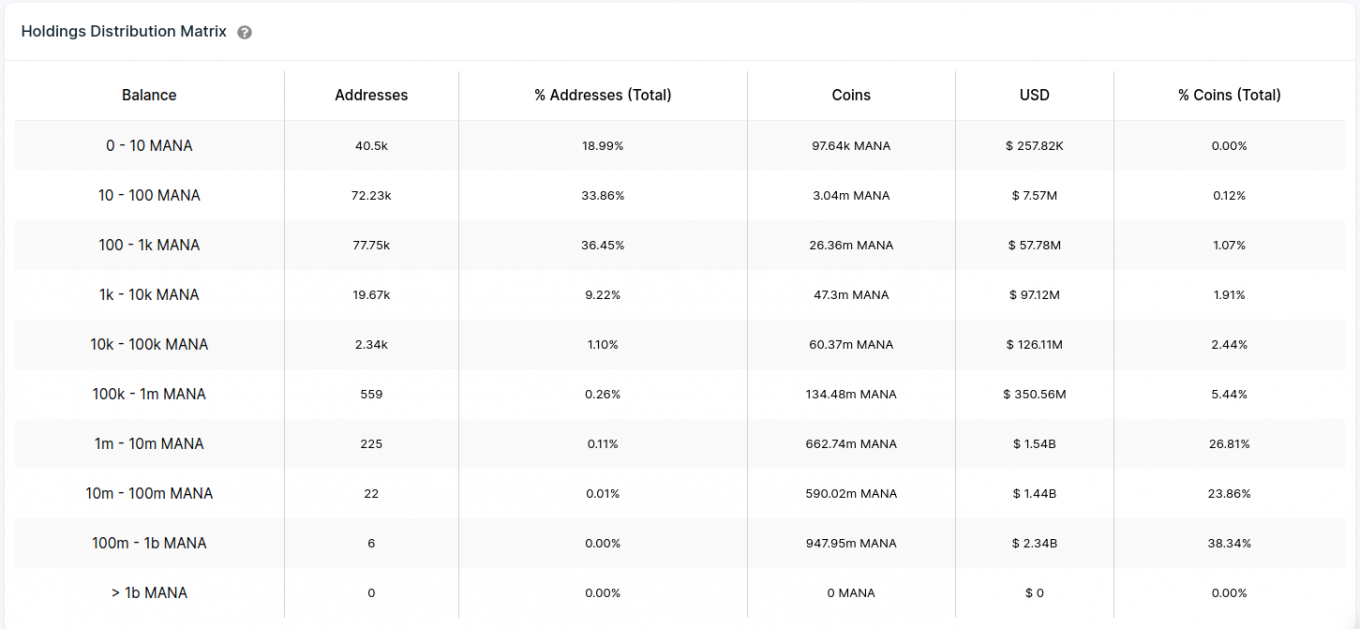 - количество бирж, на которых торгуется актив (в случае с MANA - более 100);