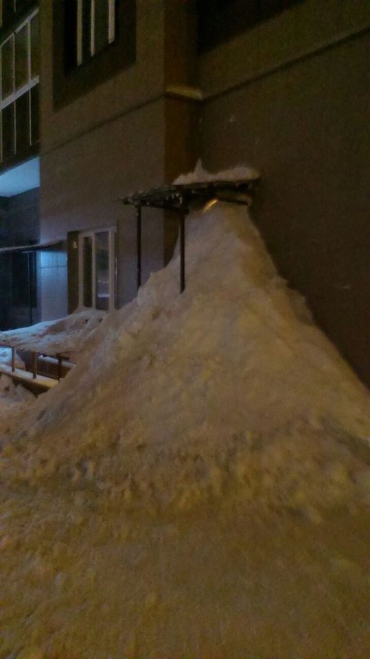 Жители одного из комплексов в России оригинальным способом высказали недовольство качеством уборки снега во дворах — они засыпали снегом дверь управляющей компании.