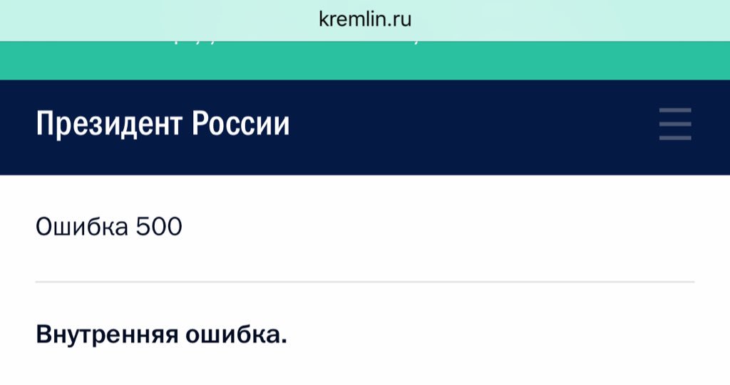 При заходе на сайт «kremlin.ru» на странице появляется сообщение «ошибка 500. Внутренняя ошибка».