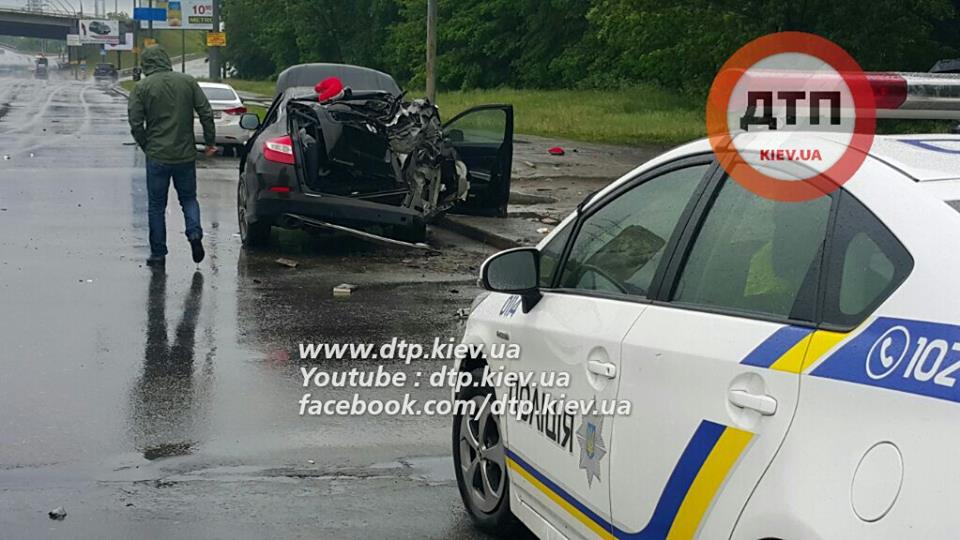 «Работаю на ДТП прямо сейчас в Киеве на Саперно-Слободской: водитель 1992 г.р Хонды Кросстур советника МВД Антона Геращенко не справился с управлением на мокрой дороге и врезался в столб», - сообщил Антонов.