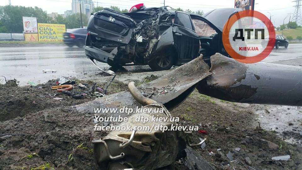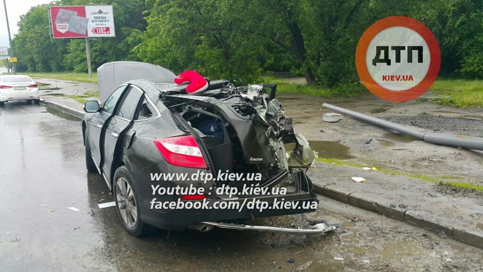 «Работаю на ДТП прямо сейчас в Киеве на Саперно-Слободской: водитель 1992 г.р Хонды Кросстур советника МВД Антона Геращенко не справился с управлением на мокрой дороге и врезался в столб», - сообщил Антонов.