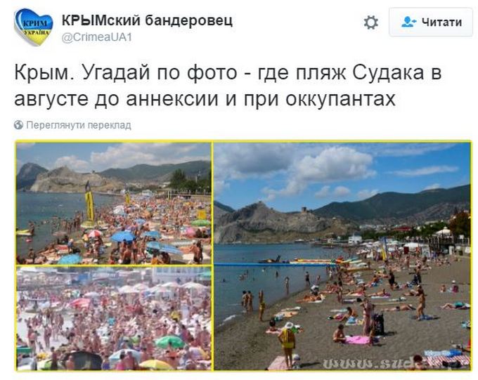 «Крым. Угадай по фото — где пляж Судака в августе до аннексии и при оккупантах», — написал в сети пользователь КРЫМский бандеровец.