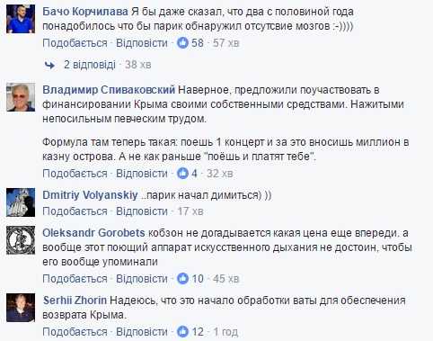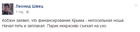«Кобзон заявил, что Крым обошелся России слишком дорогой ценой. Два с половиной года прошло, чтобы Парик наконец начал догадываться, что все пошло не так», - написал он.
