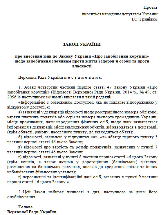 Как рассказал Гринев, который является автором проекта, эти изменения должны решить вопрос о доступе к информации о движимом и недвижимом имуществе и наличных средствах.
