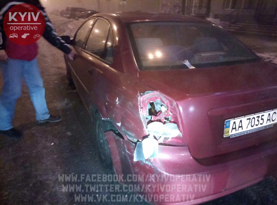 «Двое на Mercedes с номерами AA1153PE, выехав из питейного заведения, начали «лихачить» на дороге. За нарушение ПДД экипаж патрульной полиции потребовал остановиться, на что водитель не отреагировал. Началась погоня. На Леси Украинки 34 Mercedes «въехал» в Chevrolet, после чего Chevrolet отбросило в полицейский Prius. ДТП не остановило «лихача», и погоня продолжилась. На Печерском мосту полиция начала блокировать Mercedes, в результате чего он протаранил полицейский Prius и проезжавший мимо автомобиль Honda. В результате ДТП никто не пострадал», – отмечают в группе «Киев оперативный», ссылаясь на очевидцев.