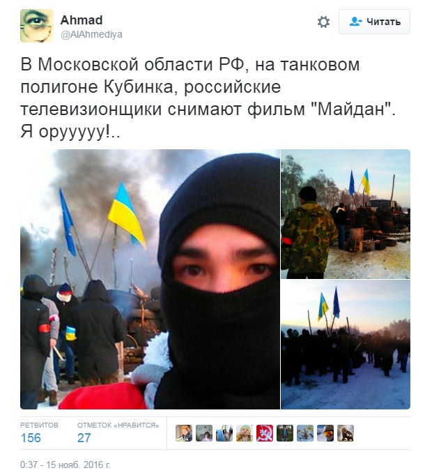 В социальных сетях посмеялись над съемками российского фильма о событиях на Майдане Независимости в Киеве в 2013-2014 годах.