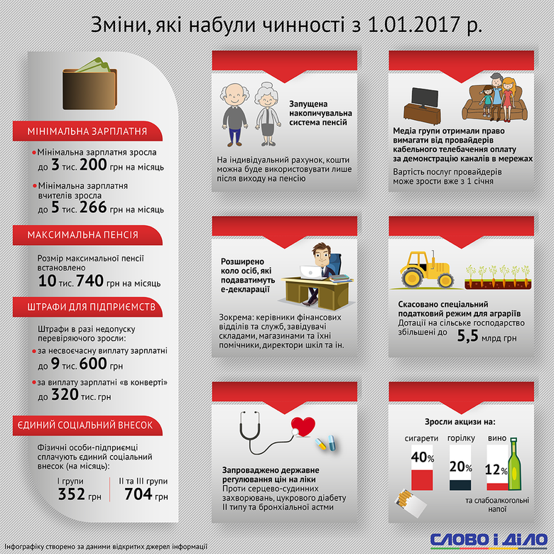 С 1 января 2017 года вступил в силу ряд нововведений в социальной и экономической политике страны.