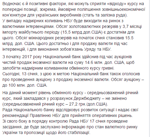 «В первой декаде января на межбанковском валютном рынке повысилась волатильность обменного курса гривни, связанная с ограниченным предложением иностранной валюты. Кроме того, в первые послепраздничные дни на межбанковский рынок поступала для продажи валютная выручка, которая накапливалась во время новогодних выходных дней в Украине, которые совпадали с рабочими днями в США и Европе. Но этот фактор был временным», - говорит председатель совета НБУ.