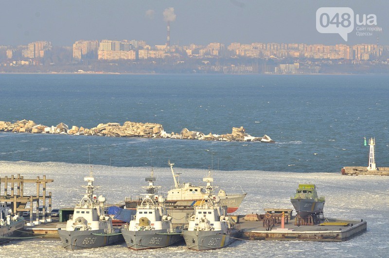 Военные корабли Украины заблокированы льдом под Одессой (Фото)