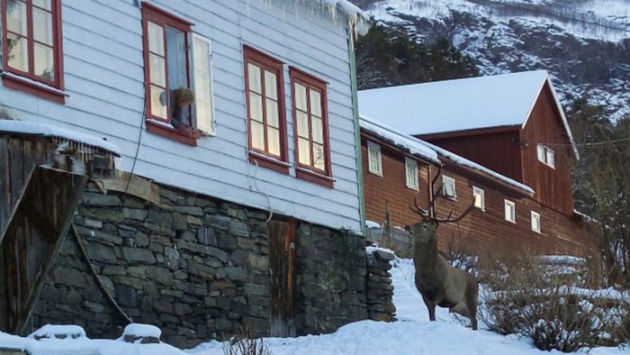 В Норвегии олень каждый день приходит в гости к своим спасителям (Фото)