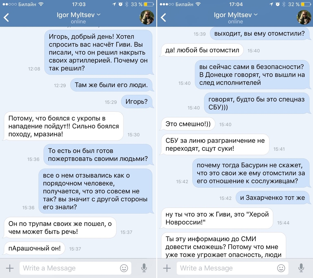 Мыльцев также рассказывает, что после ликвидации Моторолы Гиви всерьез опасался за свою жизнь, в целях безопасности вывез свою семью в Приднестровье и планировал выехать туда сам, но не успел.