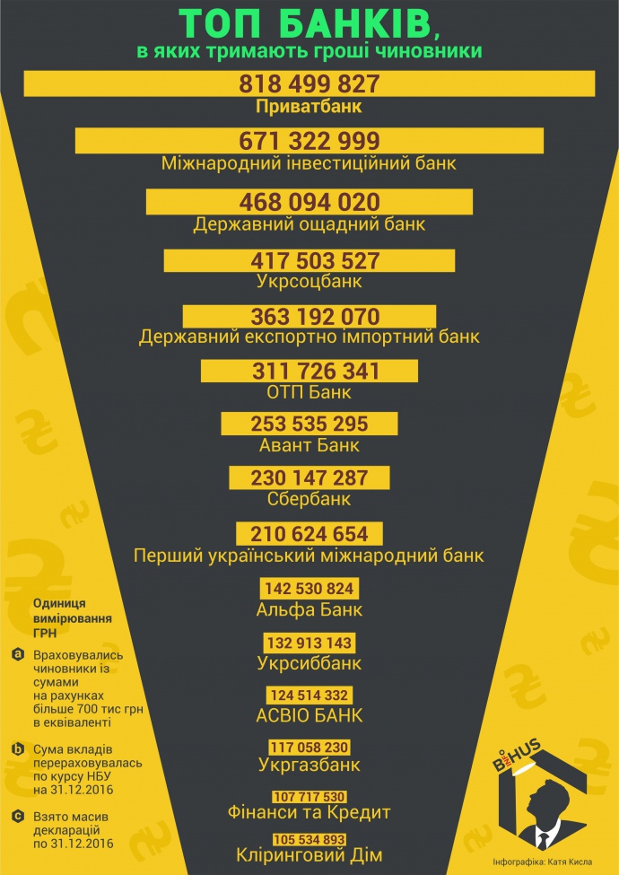 Наибольшее количество украинских чиновников хранит свои средства в государственном Приватбанке.