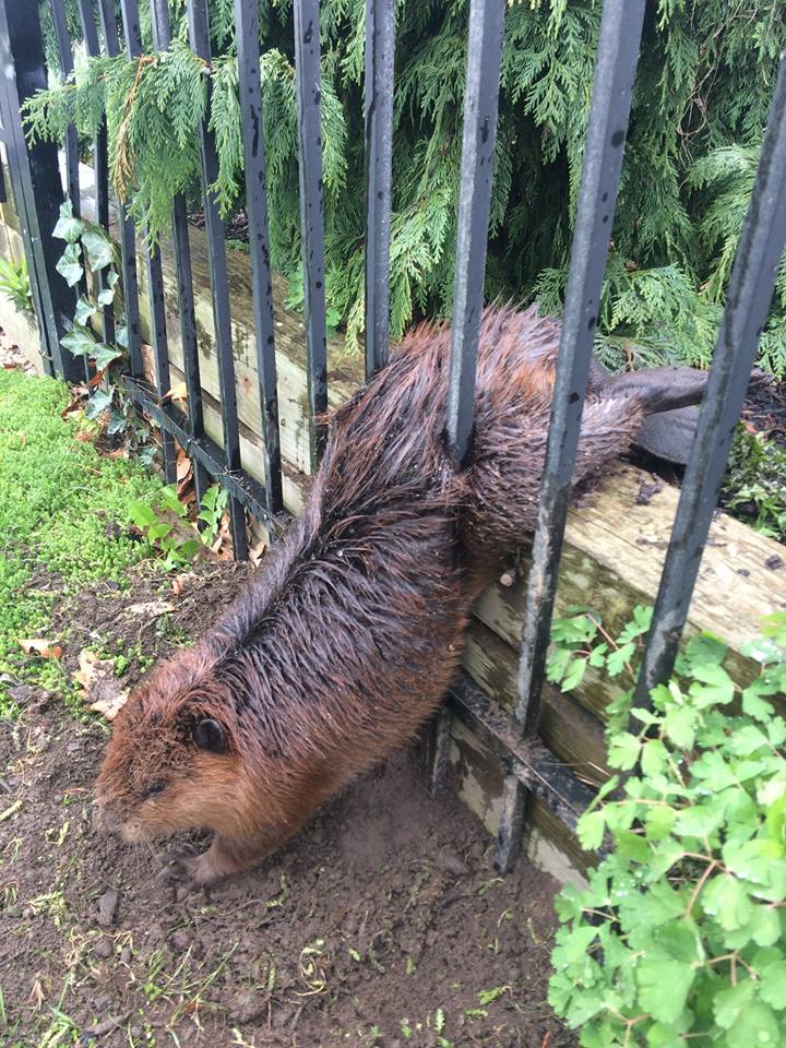 В Канаде спасателям пришлось намылить толстого бобра, застрявшего в заборе