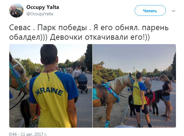 "Севастополь. Парк победы. Я его обнял, парень обалдел. Девочки откачивали его!", - написали в сети.