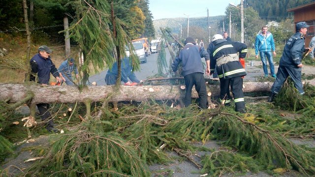 По информации спасателей, в Верховинском районе на проезжую часть дороги Татаров – Каменец-Подольский упало дерево и перекрыло движение транспортным средствам. В городе Яремче также на дорогу упало дерево и полностью перекрыло проезд", – сообщают в ГСЧС Ивано-Франковской области.