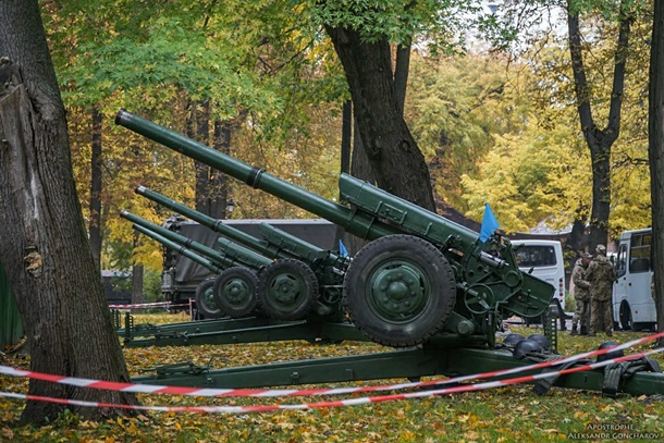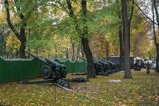 Во вторник в Мариинском парке в центре Киева накануне запланированных массовых акций протестов были замечены гаубицы.