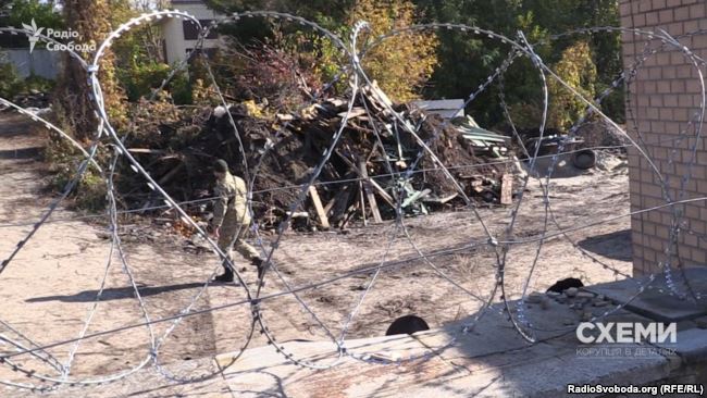 Указывается, что над забором участка Порошенко растянули колючую проволоку, срезали деревья по периметру. На территории находятся неизвестные мужчины в гражданской одежде и в камуфляже без опознавательных знаков.
