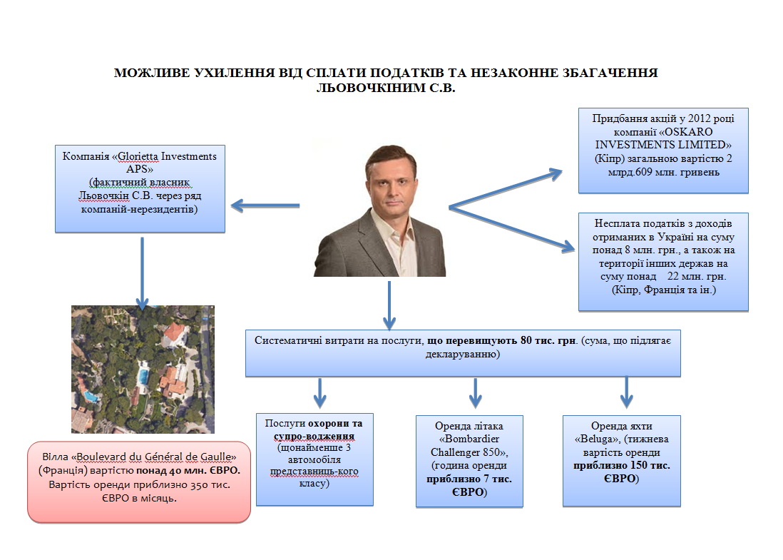 Обстоятельства также подтверждаются тем, что Левочкин в своей декларации указал, что он является владельцем акций компании OSKARO, в общем количестве 20 тысяч акций номинальной стоимостью 130 480 гривень, то есть на общую сумму 2,6 млрд гривень, говорится в сообщении.