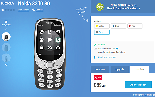 Стоимость кнопочного телефона с уникальной для моделей 3310 технологией составляет в Европе 70 евро.