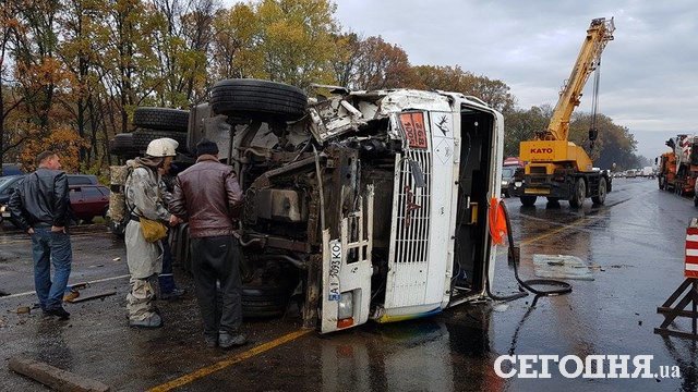 Под Киевом столкнулись грузовик и фура с аммиаком