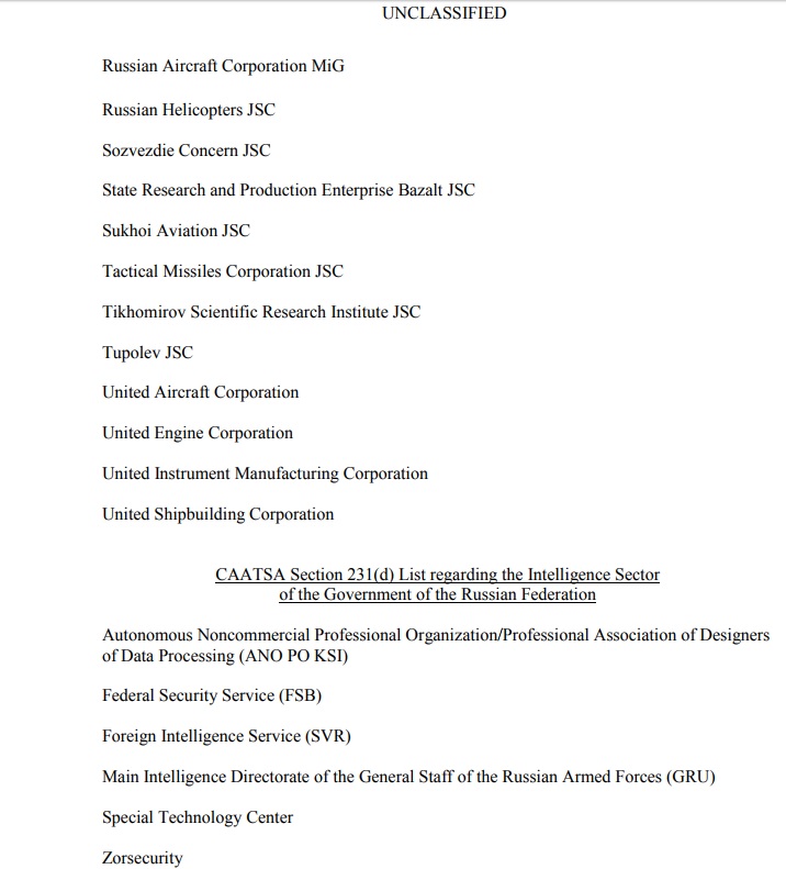Опубликован полный список российских компаний и государственных служб, которые могут попасть под новую волну санкций США.