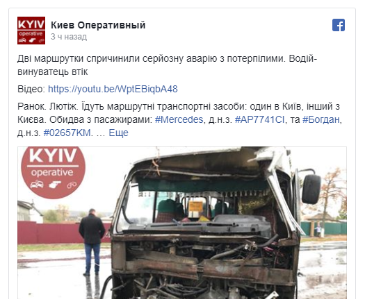 В понедельник утром в селе Лютеж Вышгородского района произошла масштабная авария с участием двух пассажирских маршруток. В результате ДТП пострадали 5 человек. Об этом сообщает ГУ НП Киевской области.