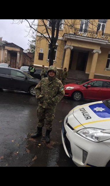 "Фото с места обыска в Харькове в рамках дела рюкзаков. Похоже, детективам будет нужна помощь ... Говорят о блокировании квартала. Наши источники говорят, что вместе с полицией еще "Восточный корпус" и "Азов", – написал он.