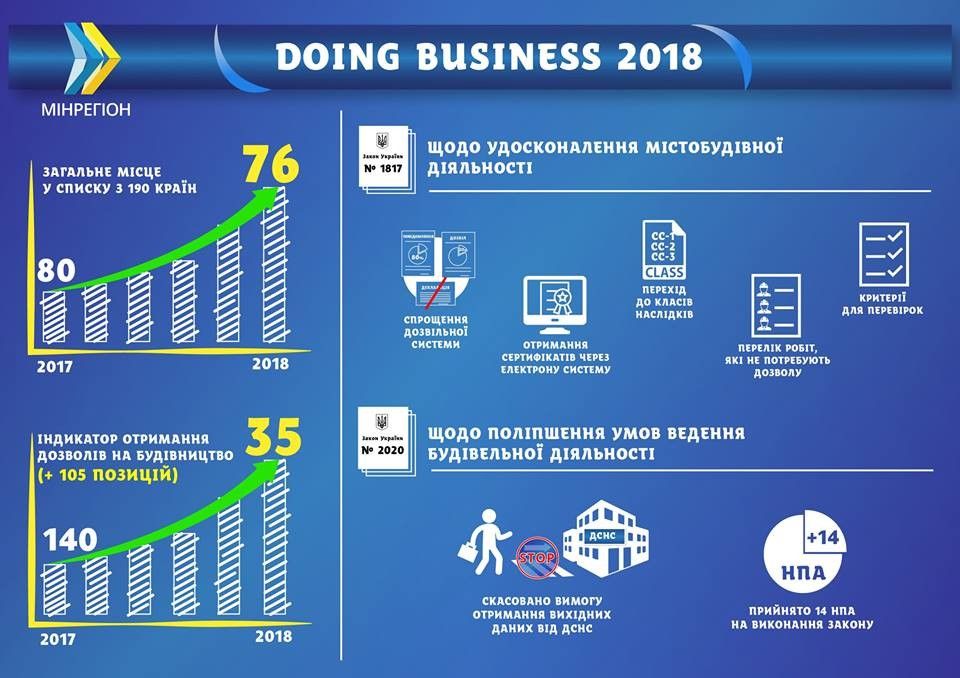 Так, министр регионального развития Геннадий Зубко также подчеркнул, что по индикатору "Получение разрешения на строительство" Украина поднялась на 105 пунктов – со 140-й позиции на 35-ю.