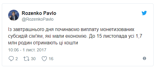 "С завтрашнего дня начинаем выплату монетизированных субсидий семьям, которые имели экономию", - отметил Розенко.