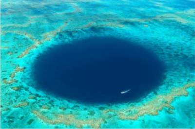 Голубой дырой называют карстовую воронку, заполненную водой и находящуюся ниже уровня моря. Свое название голубые дыры получили из-за контраста глубокой темно-голубой воды и более светлой воды вокруг.