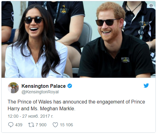 Британский принц Гарри и американская актриса Меган Маркл помолвлены. Официальное сообщение о помолвке распространила пресс-служба королевской семьи.