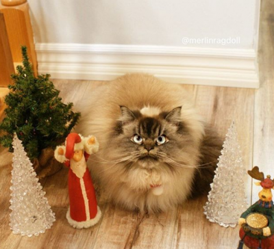 Канадский кот породы рэгдолл по кличке Мерлин стал настоящей звездой интернета из-за вечно сердитого выражения морды.
