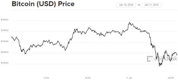 Курс самой популярной криптовалюты Bitcoin на международных биржах сегодня, 11 января, опускался ниже 13 тысяч долларов. Об этом свидетельствуют данные CoinDesk.