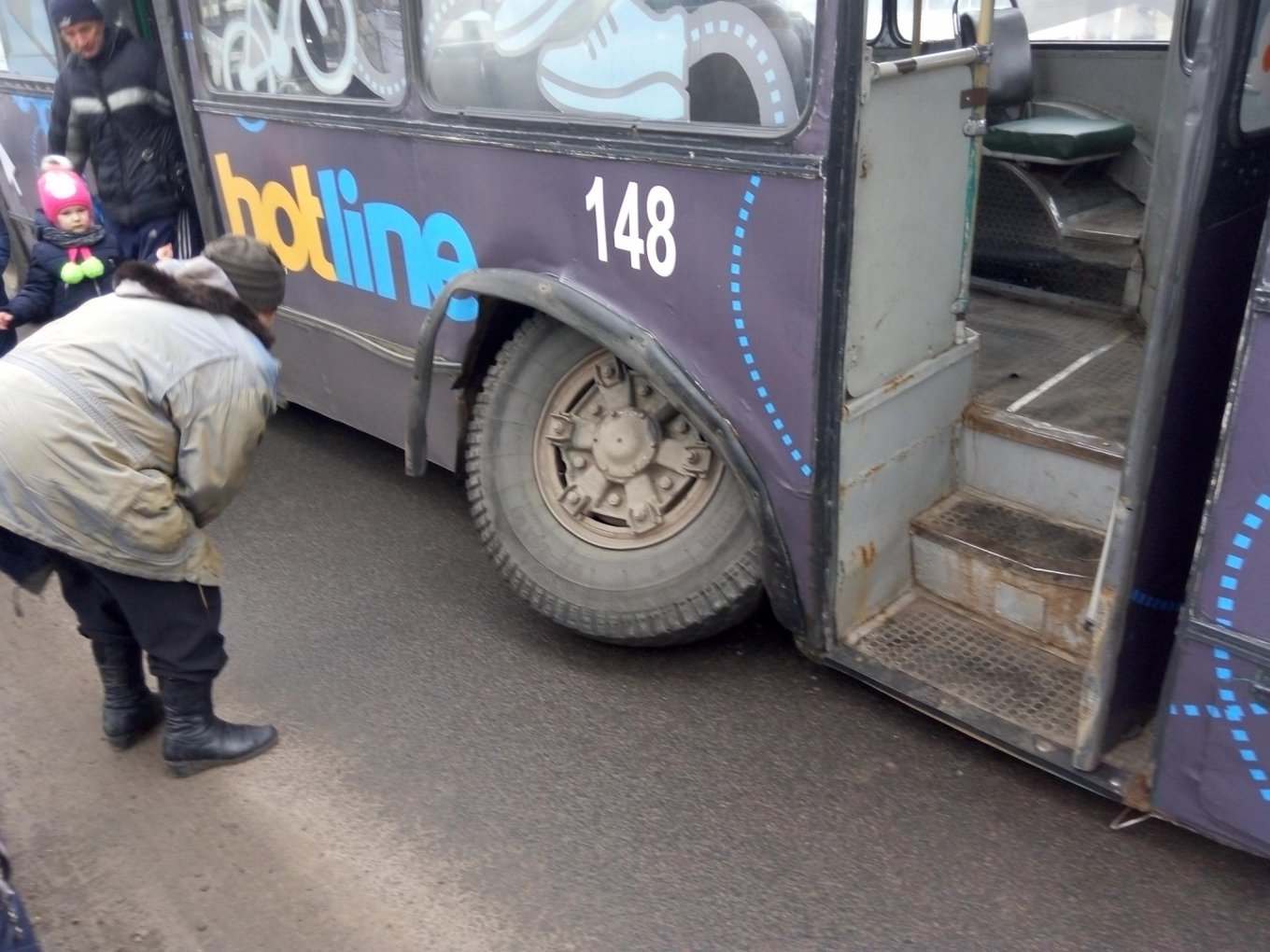 Пострадавших в ДТП нет, поскольку скорость движения была небольшой. Стоит также отметить, что данный троллейбус имеет довольно изношенный вид.