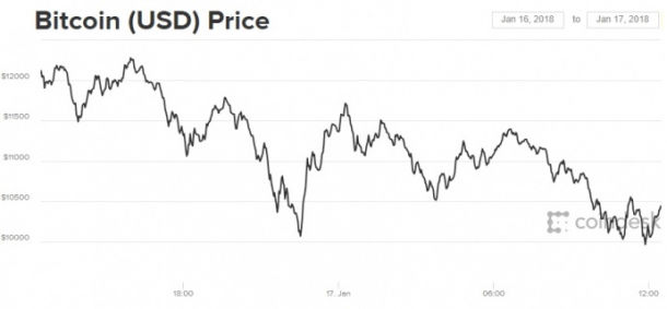 Сегодня, 17 января, курс самой популярной криптовалюты Bitcoin опускался до 9 958 долларов. После рекордного за последнее время падения курс криптовалюты немного повысился и к 11:00 по киевскому времени составил 10 546 долларов за коин, свидетельствуют данные Coindesk.