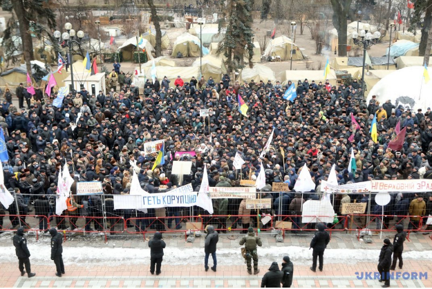 В среду, 7 февраля, около 400 человек проводят митинг военных пенсионеров под Верховной Радой. Они требуют повышения пенсий.